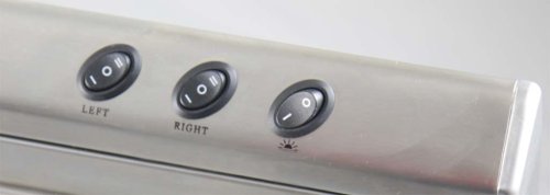 - Rocker-type 2-speed fan switch and separate light switch